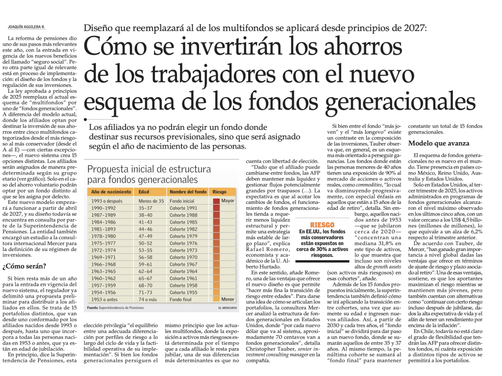 La expectativa es que al acotar los cambios de fondos, el funcionamiento de fondos generacionales tienda a requerir menos liquidez estructural y permite una estrategia más estable de largo plazo”, explica