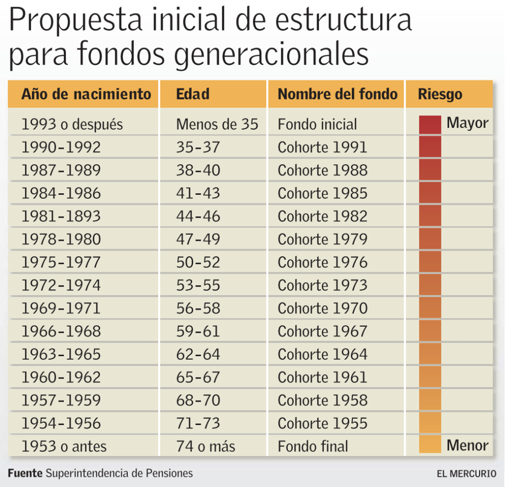 Si bien los fondos generacionales persiguen el mismo principio que los actuales multifondos, donde la exposición a activos más riesgosos está determinada por el tiempo que a cada afiliado le resta para